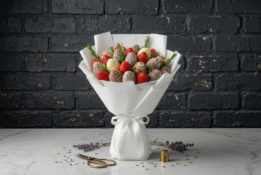 Blumenstrauß mit Rote Rosen und Ferrero Rocher Eleganter Blumenstrauß mit Rote Rosen und Ferrero Rocher Pralinen. Die Kombination aus hellen Rosen und goldenen Pralinen verleiht dem Strauß eine stilvolle und harmonische Ausstrahlung. Dieses Arrangement eignet sich ideal als Geschenk für besondere...